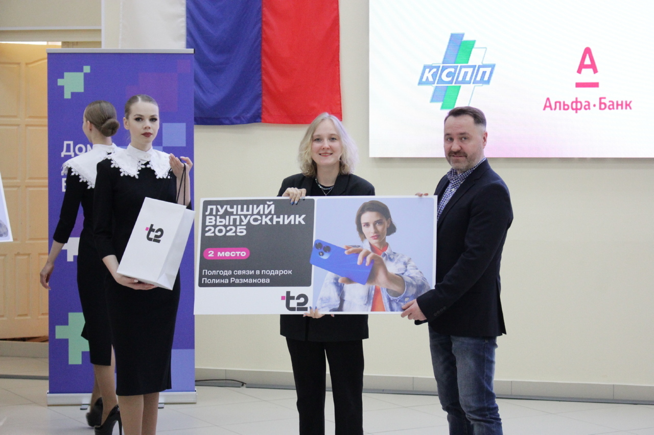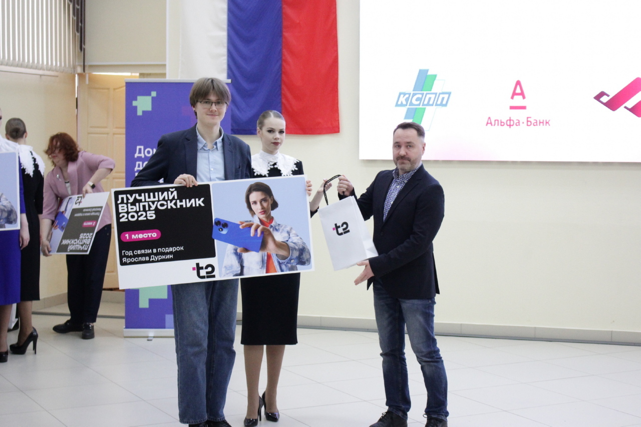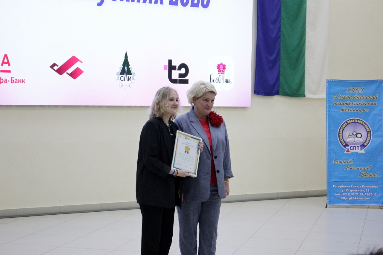 Победителям были вручены ценные призы: Ярослав получил годовой сертификат на бесплатное обслуживание от компании Т2, а Полина – сертификат на полгода. Кроме того, директор Сыктывкарского лесного института Любовь Гурьева торжественно вручила студентам ссузов – также лучшим выпускникам – брендированные подарки.