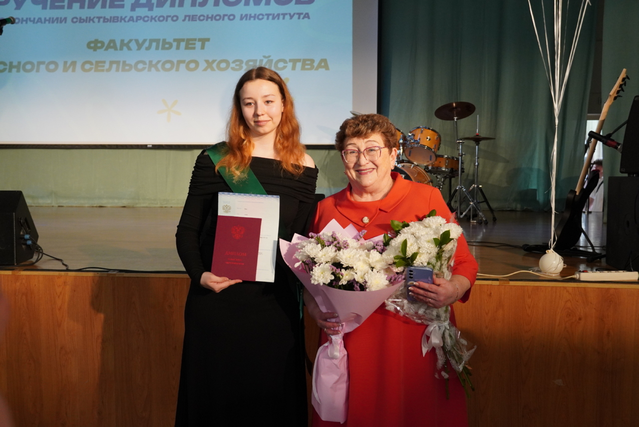 Далее директор СЛИ вручила лучшим выпускникам дипломы с отличием Санкт-Петербургского государственного лесотехнического университета имени Сергея Мироновича Кирова – нашего головного вуза.