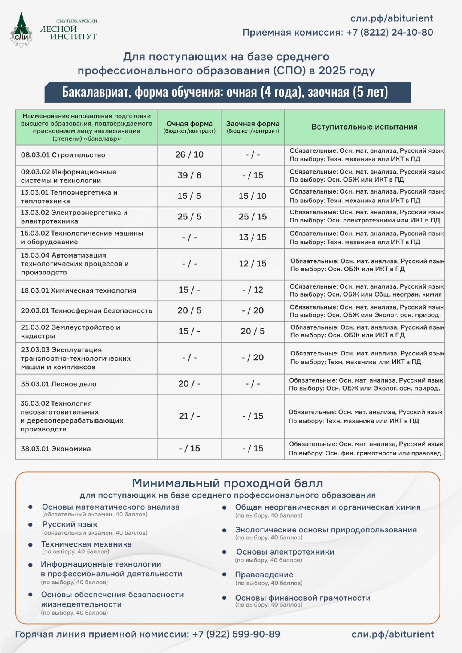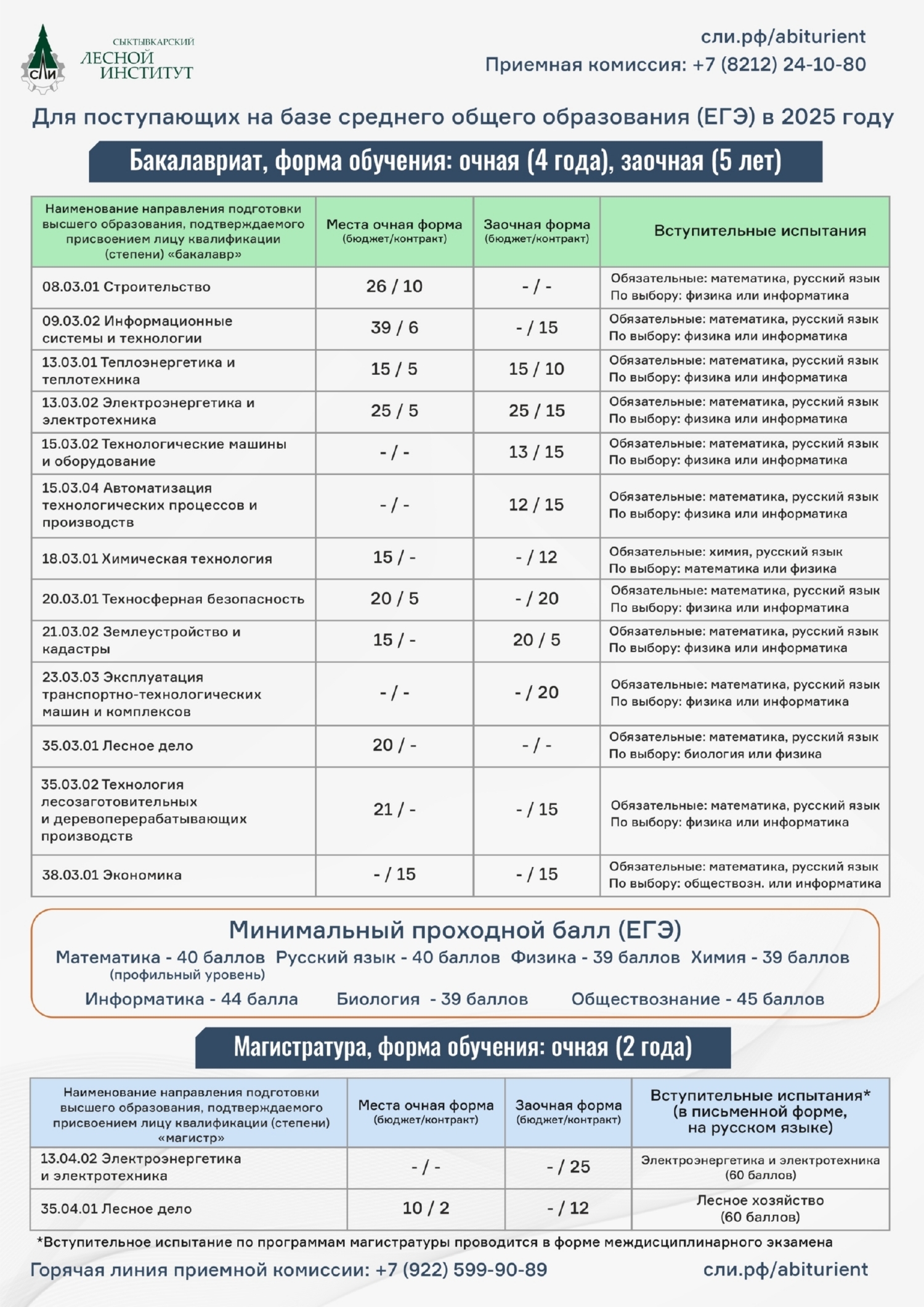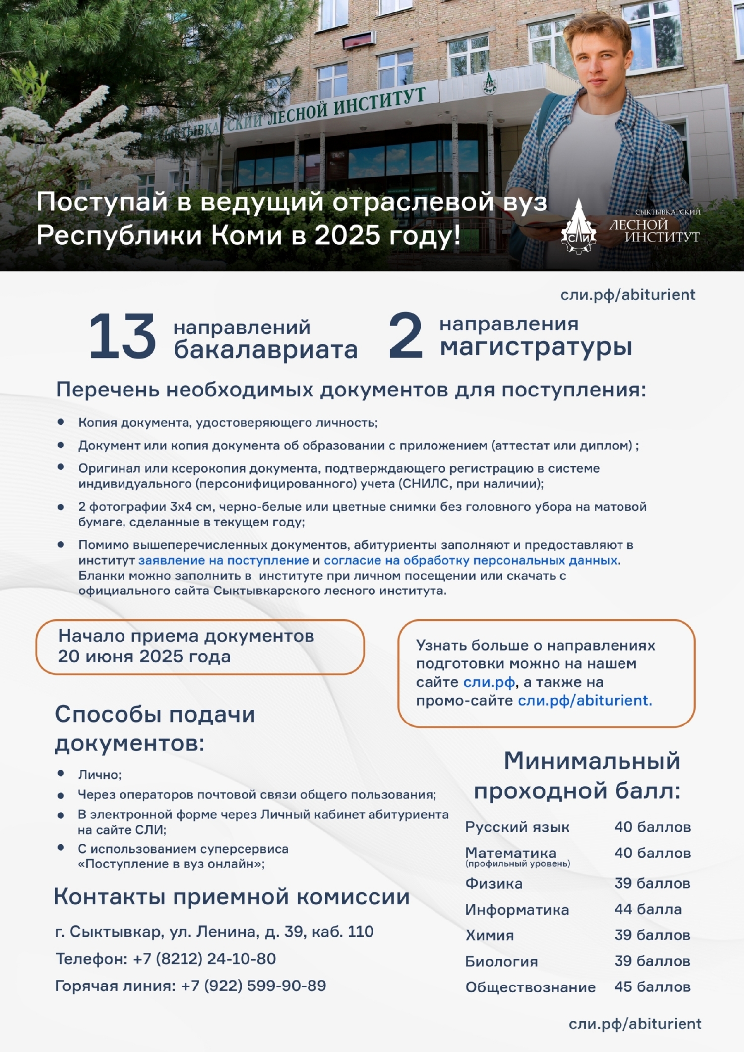 Сыктывкарский лесной институт продолжает набор абитуриентов на первый курс!