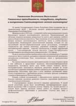От души желаю всему коллективу вуза здоровья, счастья, благополучия, уверенности в завтрашнем дне и, конечно, дальнейших успехов в развитии лучших традиций в подготовке современных специалистов для лесной отрасли экономики нашего региона и страны!